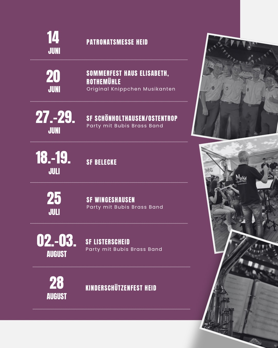 Auch in diesem Jahr war jedes einzelne Schützenfest in unserer Saison eine kleine BesonderHEID. Vielen Dank an alle Schützen und Besucher in Hünsborn, Schönholthausen-Ostentrop, Belecke und Wingeshausen, es war (wenn man sich beim Rückblick unser Schlagzeug- und Trompetenregister anschaut) umwerfend!